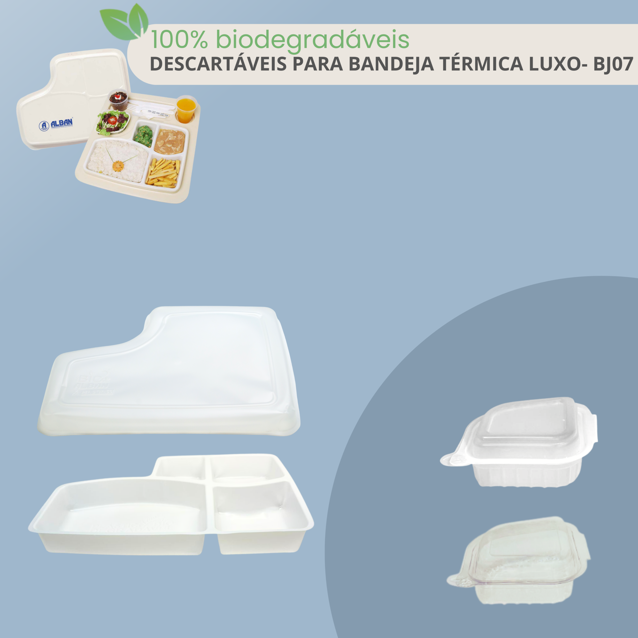 Robustez, praticidade e conservação ideal das refeições em um só produto. A Bandeja Hospitalar Térmica Luxo Descartável da Alban foi desenvolvida para oferecer alto desempenho na distribuição de alimentos em hospitais e instituições de saúde, garantindo higiene, segurança e conforto ao paciente.